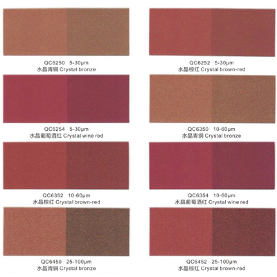 合成云母珠光颜料是采用最新材料工艺,以人工合成云母晶体为基材用二氧化钛、氧化铁或其它金属氧化物包膜而成的珠光颜料。与天然云母珠光颜料系列相比,白度更高,色浓度更好,金属光泽更强,在虹彩、金色、铁系列方面的表现尤为优秀,并提供如水晶般丰富的色彩元素。合成云母无杂质、耐高温、耐腐蚀,其环保、安全、稳定、持续方面均优于天然云母,在珠光颜料行业前景广阔,为具有严格合规要求的行业提供了最佳选择。