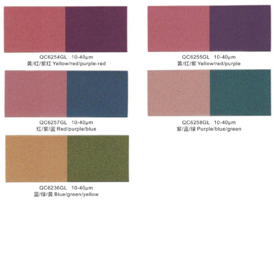 高光变色龙系列珠光颜料是以合成云母为基材,精准包覆氧化铁以及二氧化硅等金属或非金氧化物而形成,是一系列色度、纯度、以及色彩等方面极具优势且具随角异色特性的创新光学效果系列产品。其具有色彩纯净艳丽、色饱和度高以及多样动态变色、奇特随角异色效果等特点。